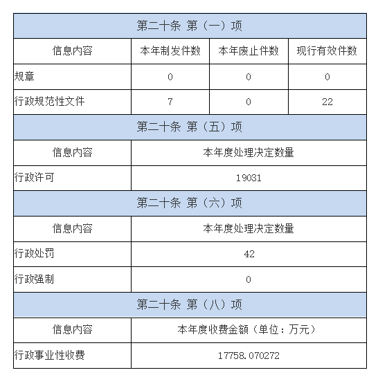 (一)主动公开情况。按照《条例》要求,2021年,省局积极运用政府网站与政务新媒体渠道对药品监管工作行政法规、规范性文件、AG真人、行政许可事项、行政处罚、预算决算、监督检查等内容进行了主动公开。截至12月31日,在门户网站公开各类信息共计2079条,其中概况类信息4条,AG真人目录信息204条,网站年度总浏览量达256.5万人次。在“湖南药品监管”微信公众号推送信息稿件共计661条,订阅人数14943人,全年阅读量达10.3万人次。在湖南省统一互动交流平台和湖南省互联网+政务服务一体化平台受理并答复药品监管领域相关咨询办件共计363件。